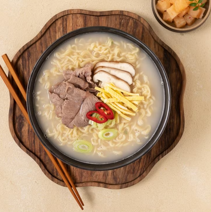 Es un ramen que reproduce el sabor de la sopa tradicional gomtang (a base de hueso de res). Un platillo de alta categoría que ha estado en la mesa del rey Sura desde la antigüedad.