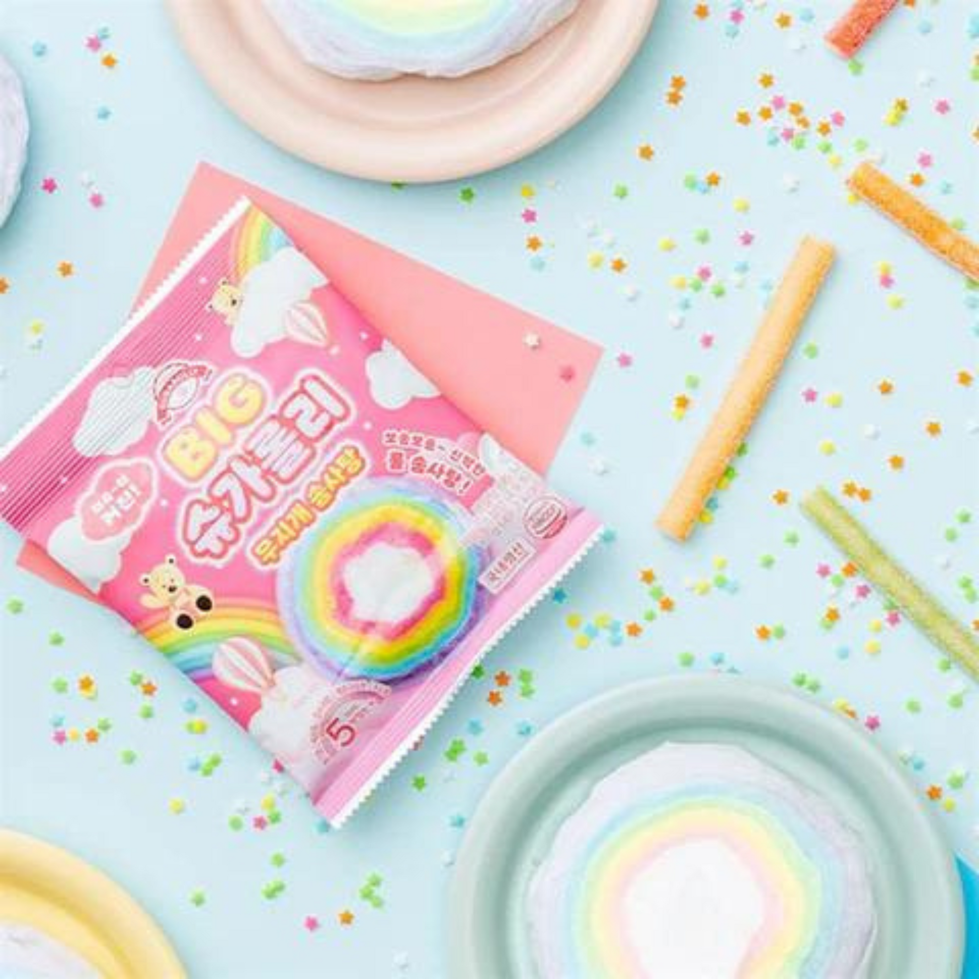 Colorido algodón de azúcar para los niños y para los adultos es ideal para darle color al soju (licor de arroz), junto con un toque de sabor dulce.